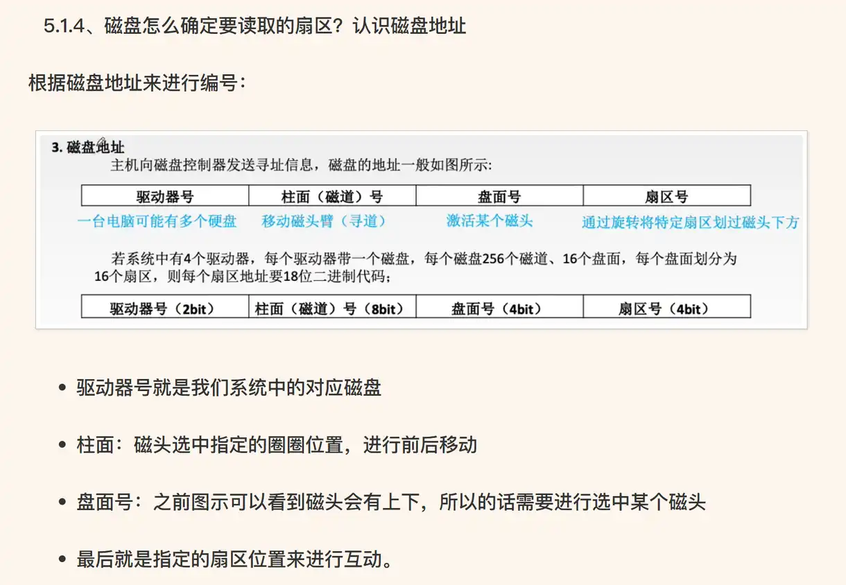 A: 磁盘地址一般由柱面(磁道)号、盘面(磁头)号和扇区号组成。