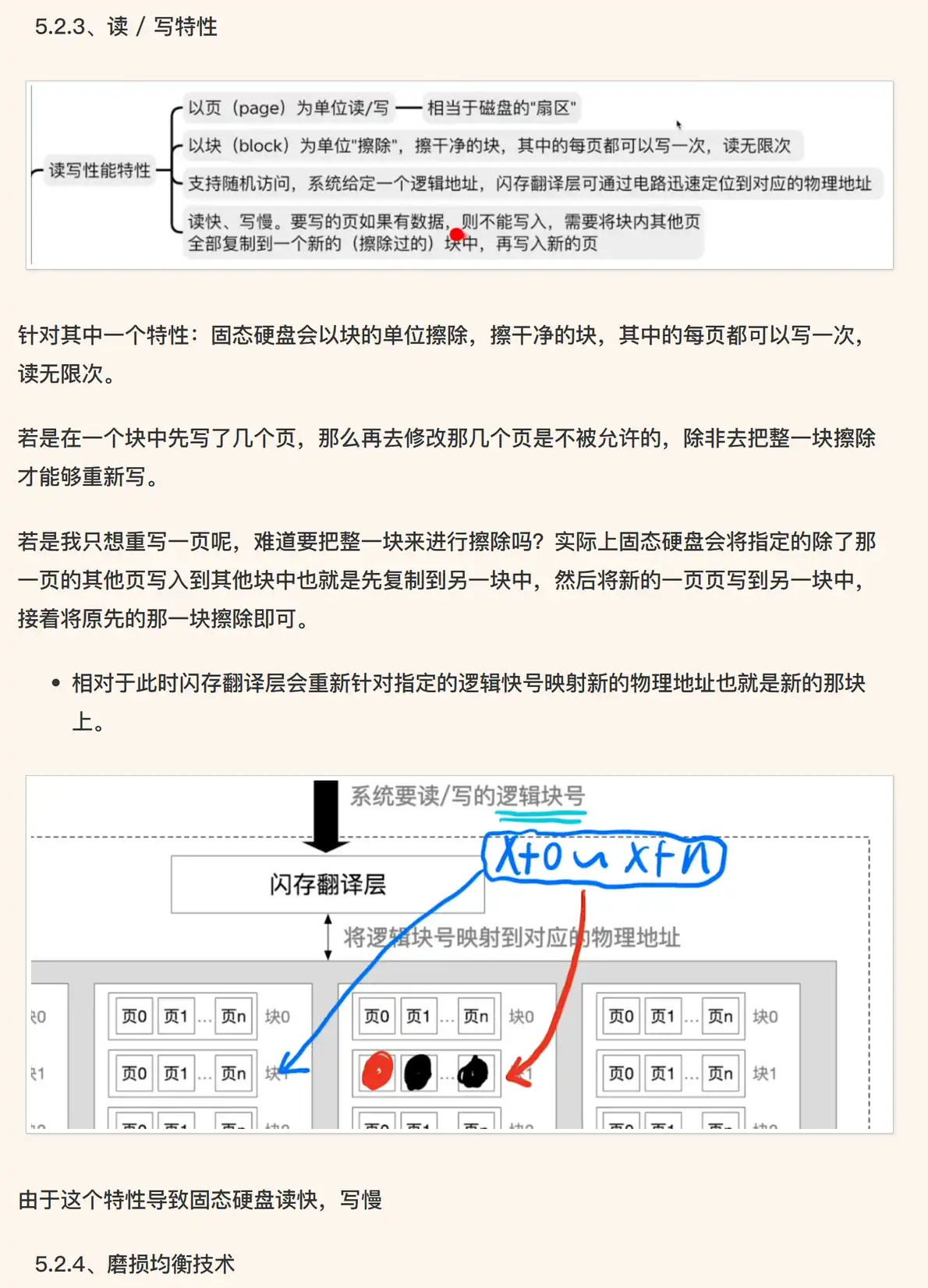 • 若写操作试图修改一个包含已有数据的页,则这个块中所有含有用数据的页都必须被复制到一个新 (擦除过的) 块中,然后才能进行对页的写操作。