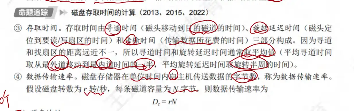 注意这里的两个一半,寻道时间是要取一半的平均值,旋转时间也是一半,也就是半周