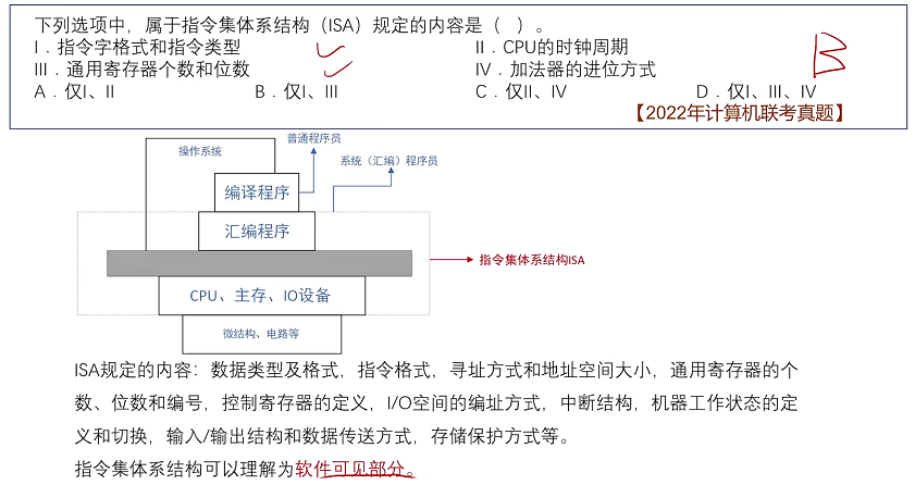 Q:下列有关指令集体系结构 (ISA) 的叙述中, 错误的是 ( )。