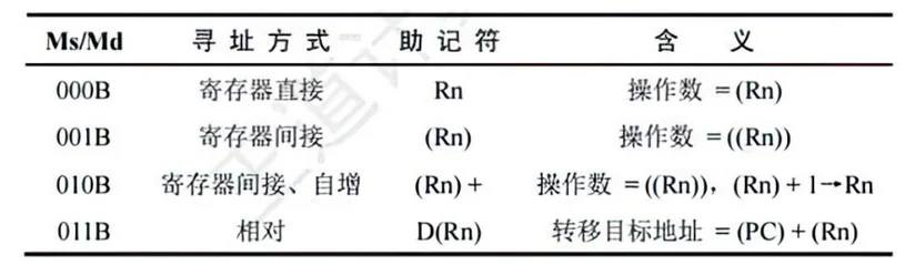 转移指令采用相对寻址方式, 相对偏移量用补码表示, 寻址方式定义见下表.