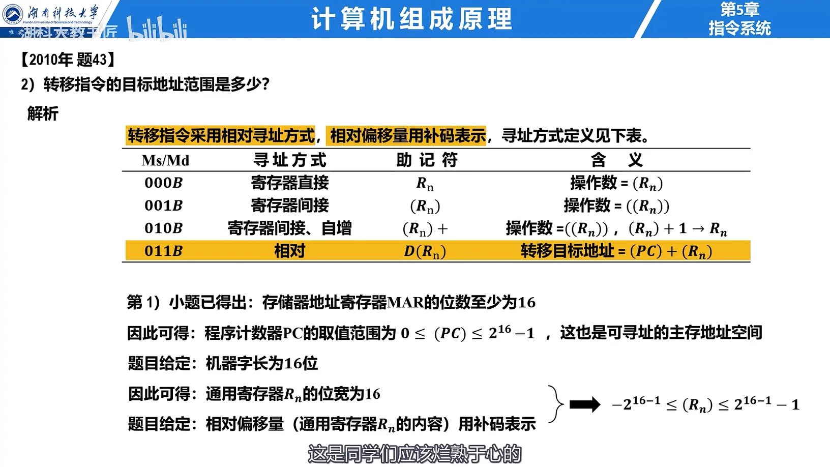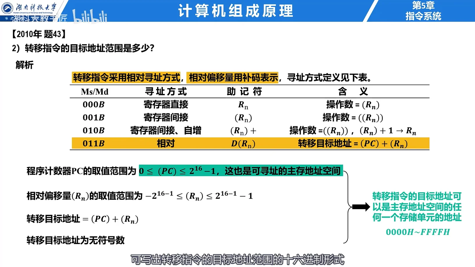 可表示的地址范围为 , 可表示的相对偏移量为 ,而主存地址空间为 ,因此转移指令的目标地址范围为 。 - 汇编语句 “add (R4), (R5)+” 对应的机器码为