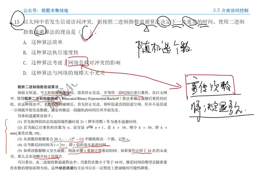 Q: 当数据帧因冲突而传输失败时,CSMA/CD 协议采用什么算法来后退一段时间再重新发送数据帧?