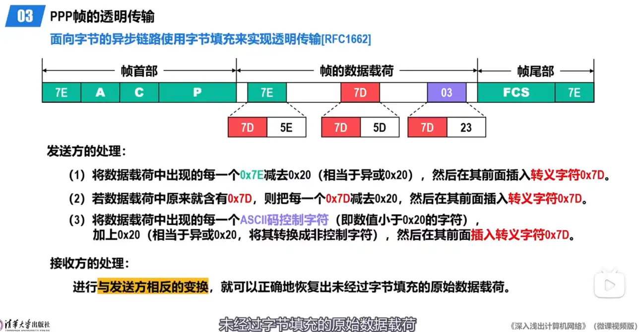 - 插入转义字符:若是在数据部分过程中遇到了与帧定界符一样的标志字段,我们就需要再对应的字段之前加上这个这个转义字符。