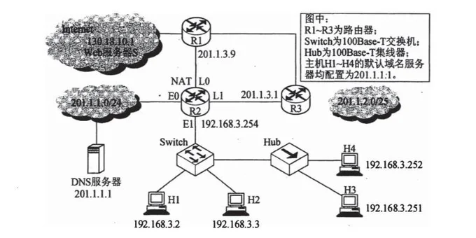 Q:假设连接 R1、R2 和 R3 之间的点对点链路使用 201.1.3.x/30 地址,当 H3 访问 Web 服务器 S 时,R2 转发出去的封装 HTTP 请求报文的 IP 分组的源 IP 地址和目的 IP 地址分别是( )。