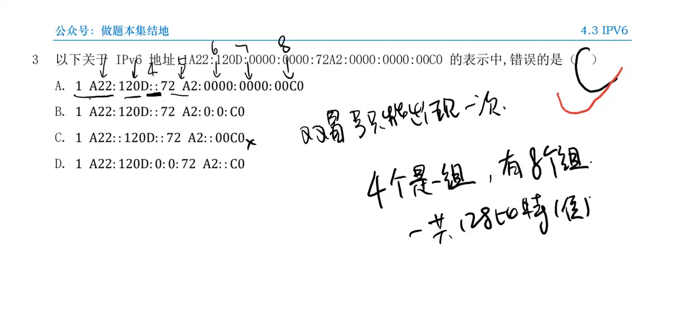 Q:以下关于 IPv6 地址 1A22:120D:0000:0000:72A2:0000:0000:00C0 的表示中, 错误的是( )