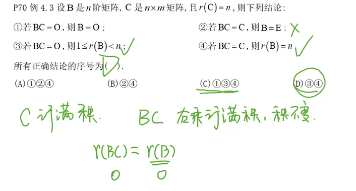 Q:P70 设 阶矩阵, 矩阵,且 ,则下列结论:
