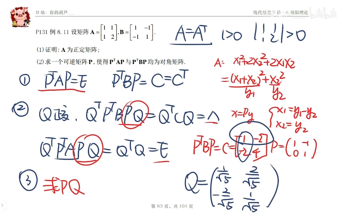 需要关注的的是,正定矩阵一定可以和单位矩阵E去合同