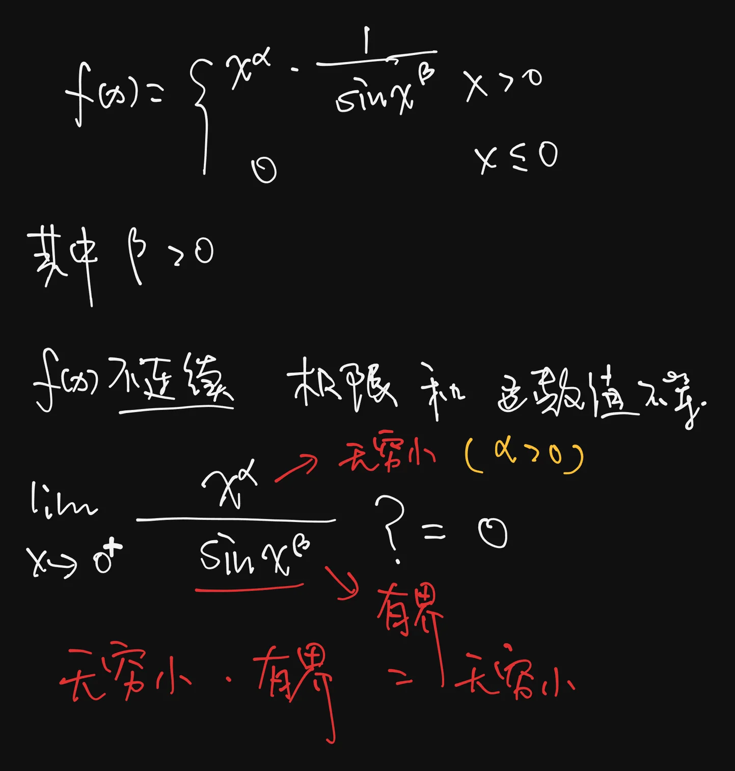 (4) 由 (3) 知,当 时, 在 上有界. 要使 在 处不连续,只需 ,即只需 .