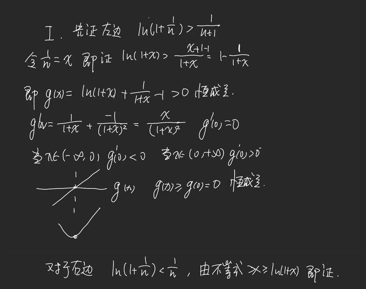 第一问直觉上就是,做差然后求导,像高中一样证明就好