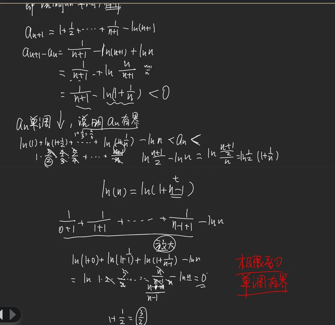 第二问的直觉是,利用单调有界准则,先做差,说明单调,然后用第一问的不等式,调整分式,去和