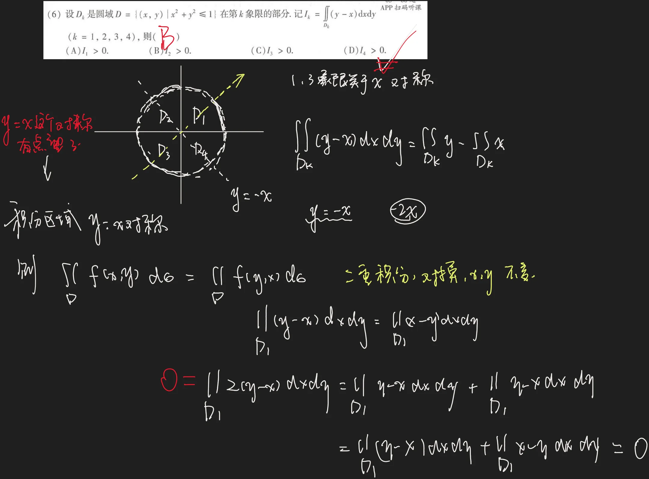 轮换对称性简化二重积分,轮换x和y的位置,二重积分不变