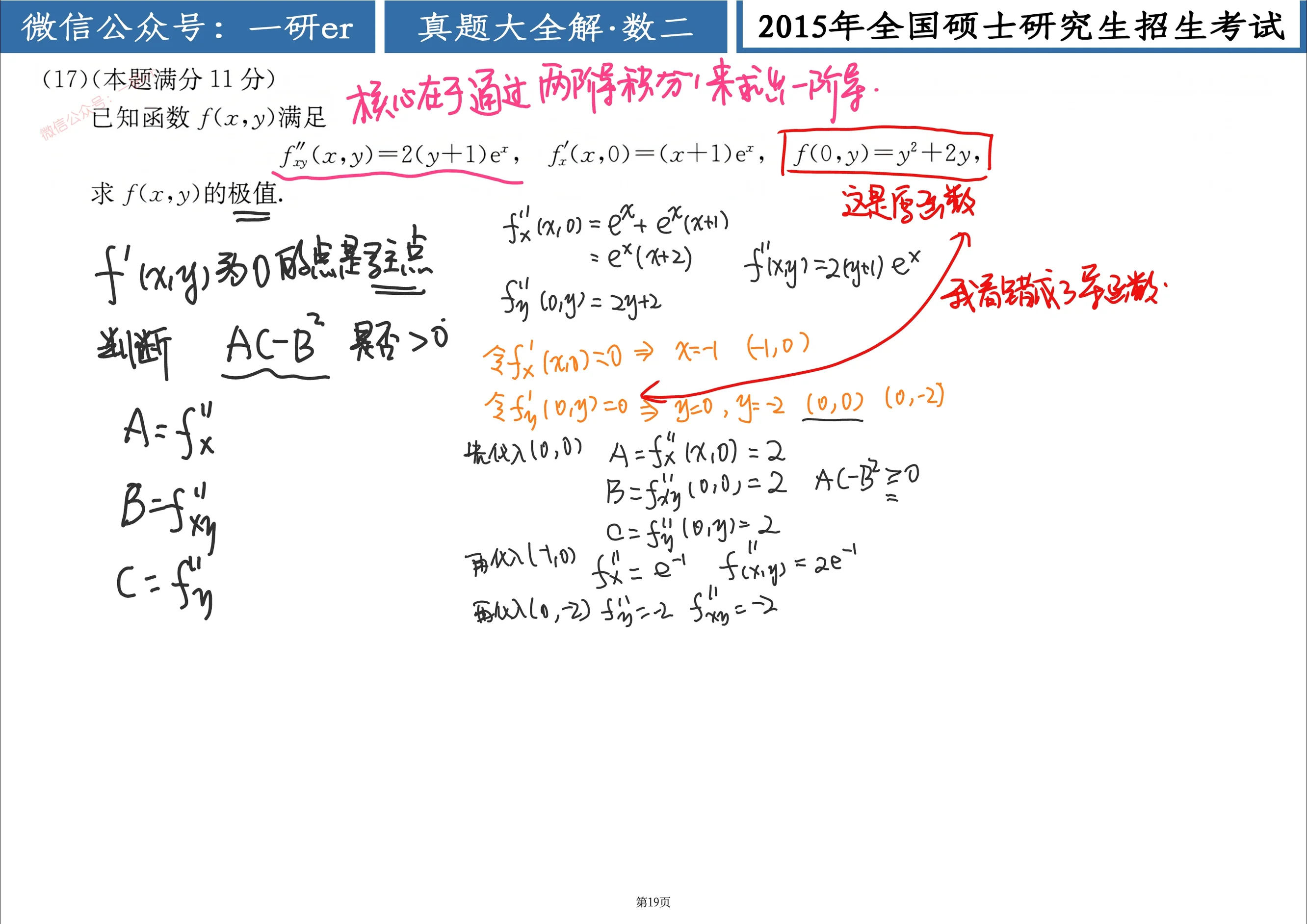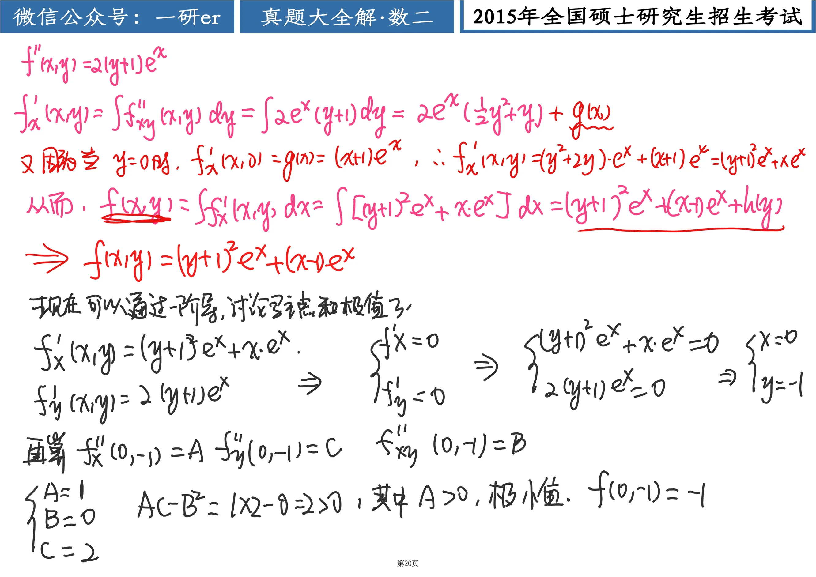 偏积分的考点,求这个无约束极值核心是积分积出来一阶导的函数,求出这个驻点