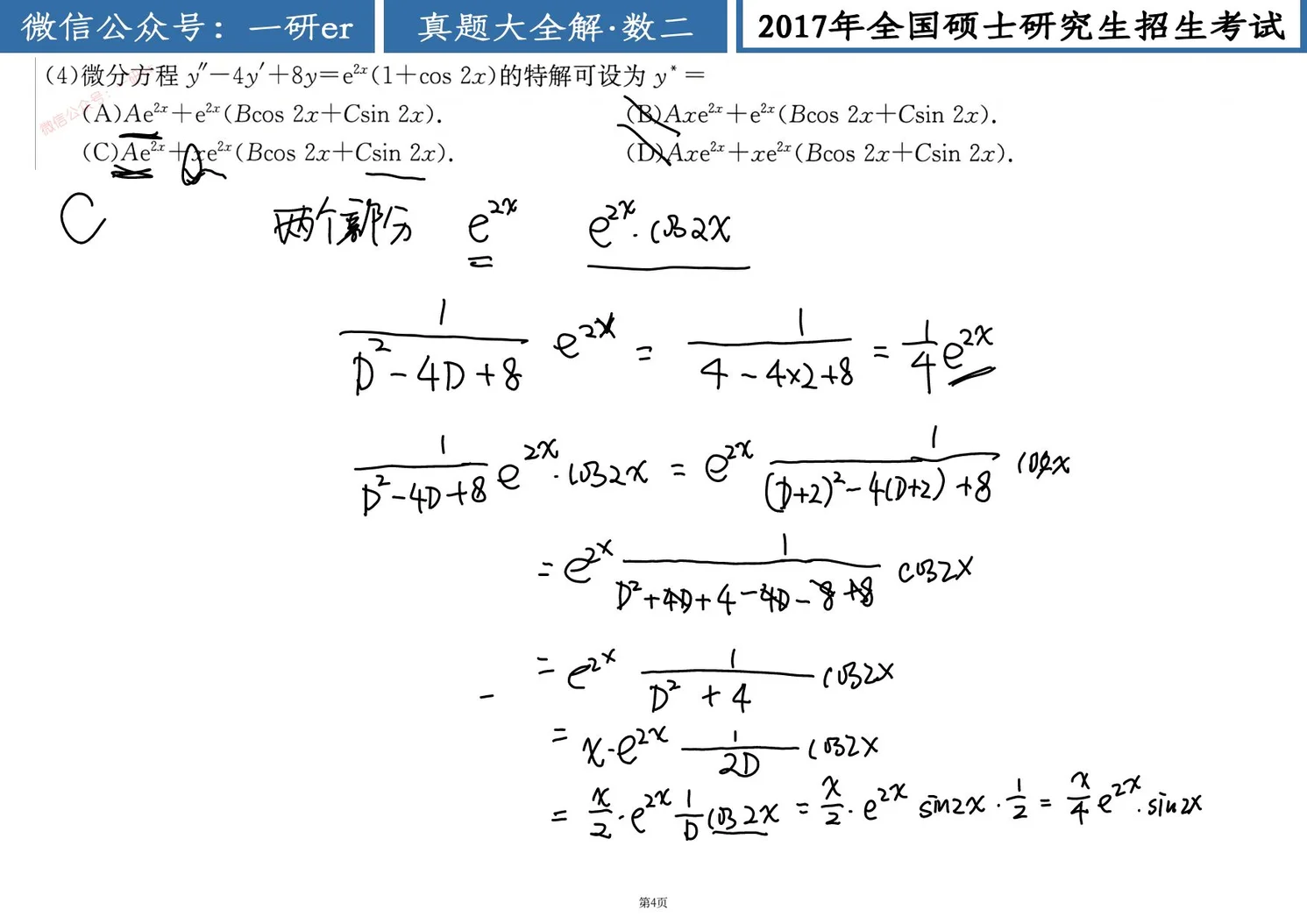 本题中的微分方程的非齐次项 可写为 之和,故可以分别写出 的特解形式,再利用解的叠加原理,得到原微分方程的特解形式.