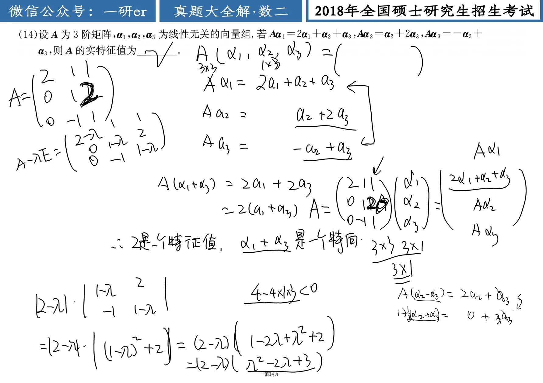 由于,故仅有一个实根,即。于是,仅有一个实特征值2。