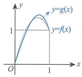 因此, 上的最大值大于 1 . 如图 (a) 所示,记该点为 ,由于 , 故 .