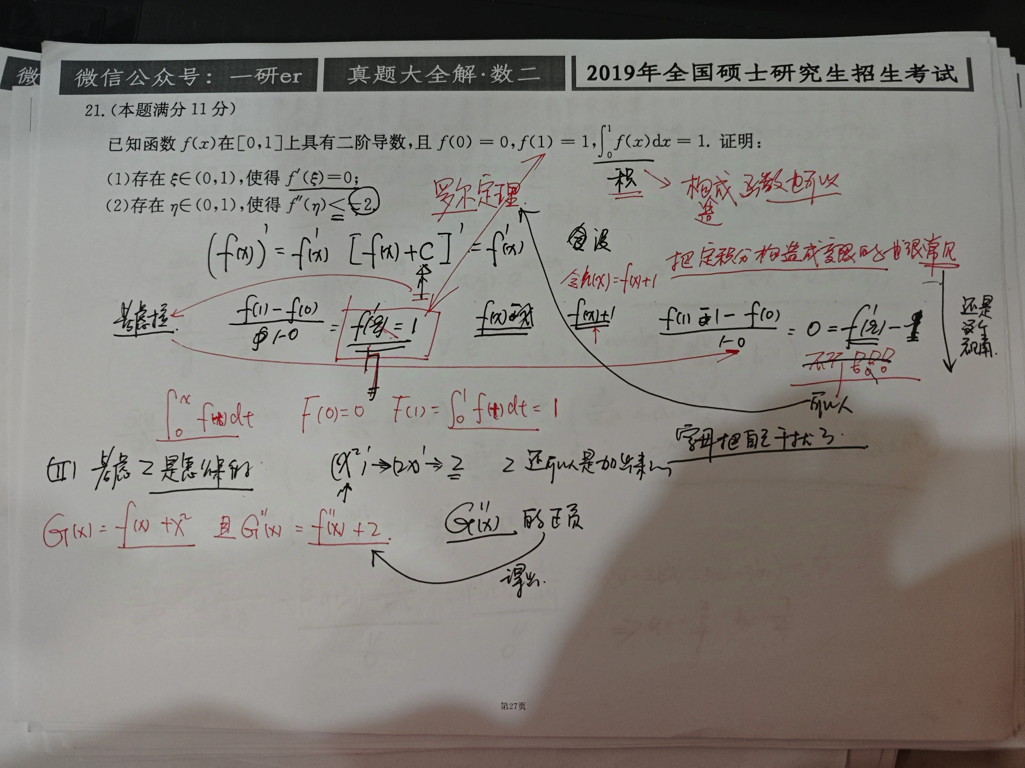 再对 上的 使用罗尔定理可得,存在 ,使得 .