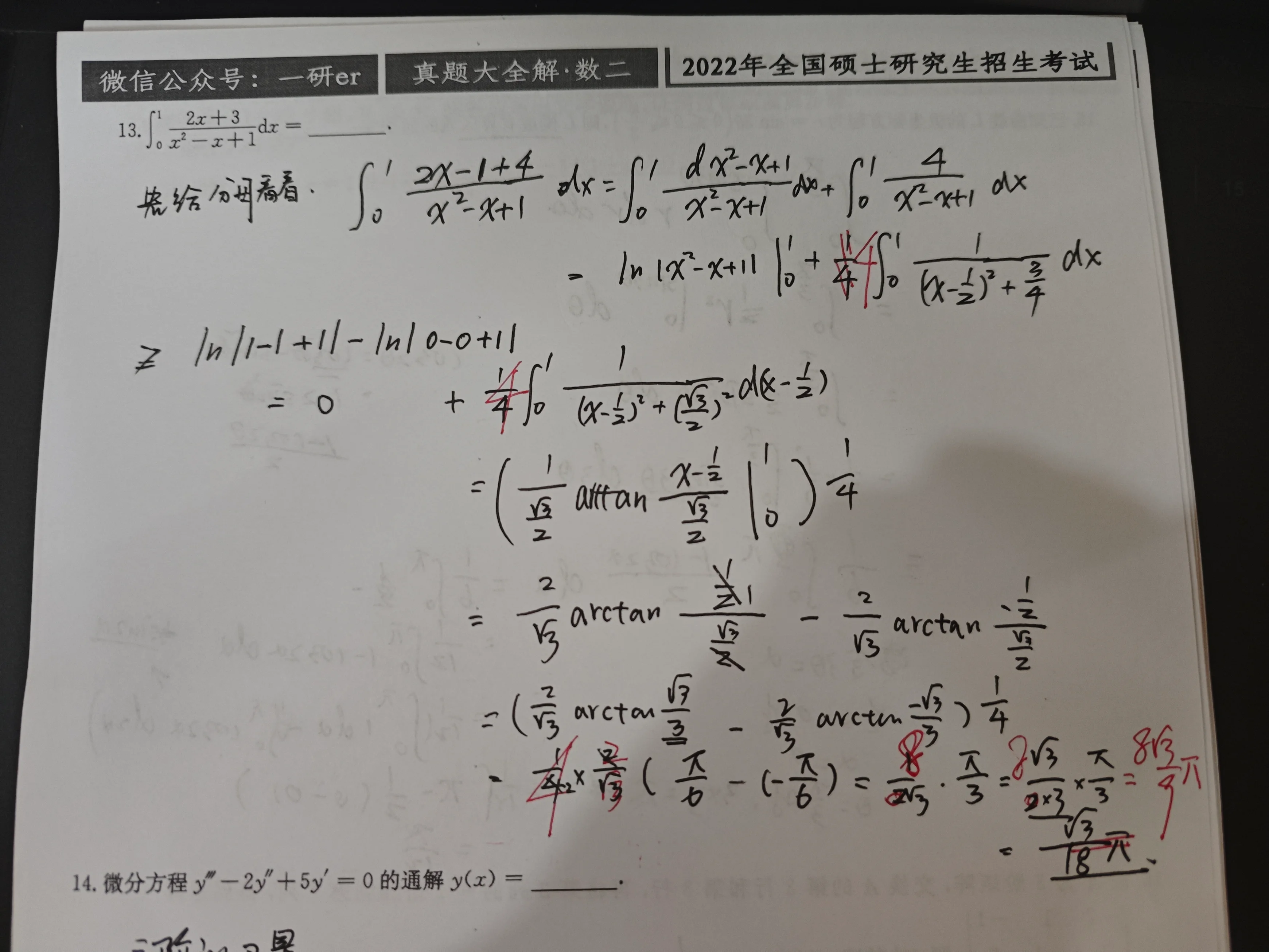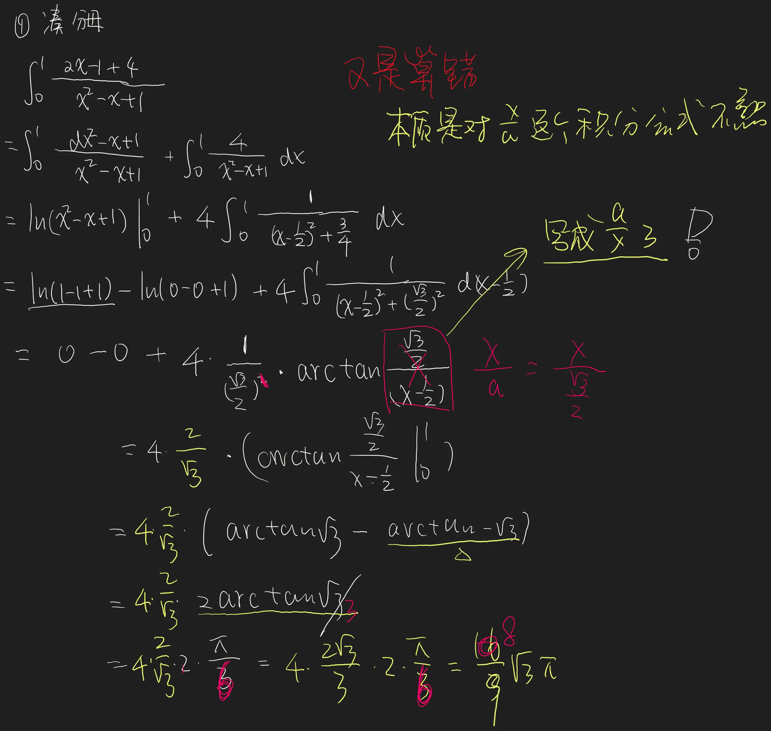 反三角函数的积分公式,非常不熟悉,这里第二次算,又算错了