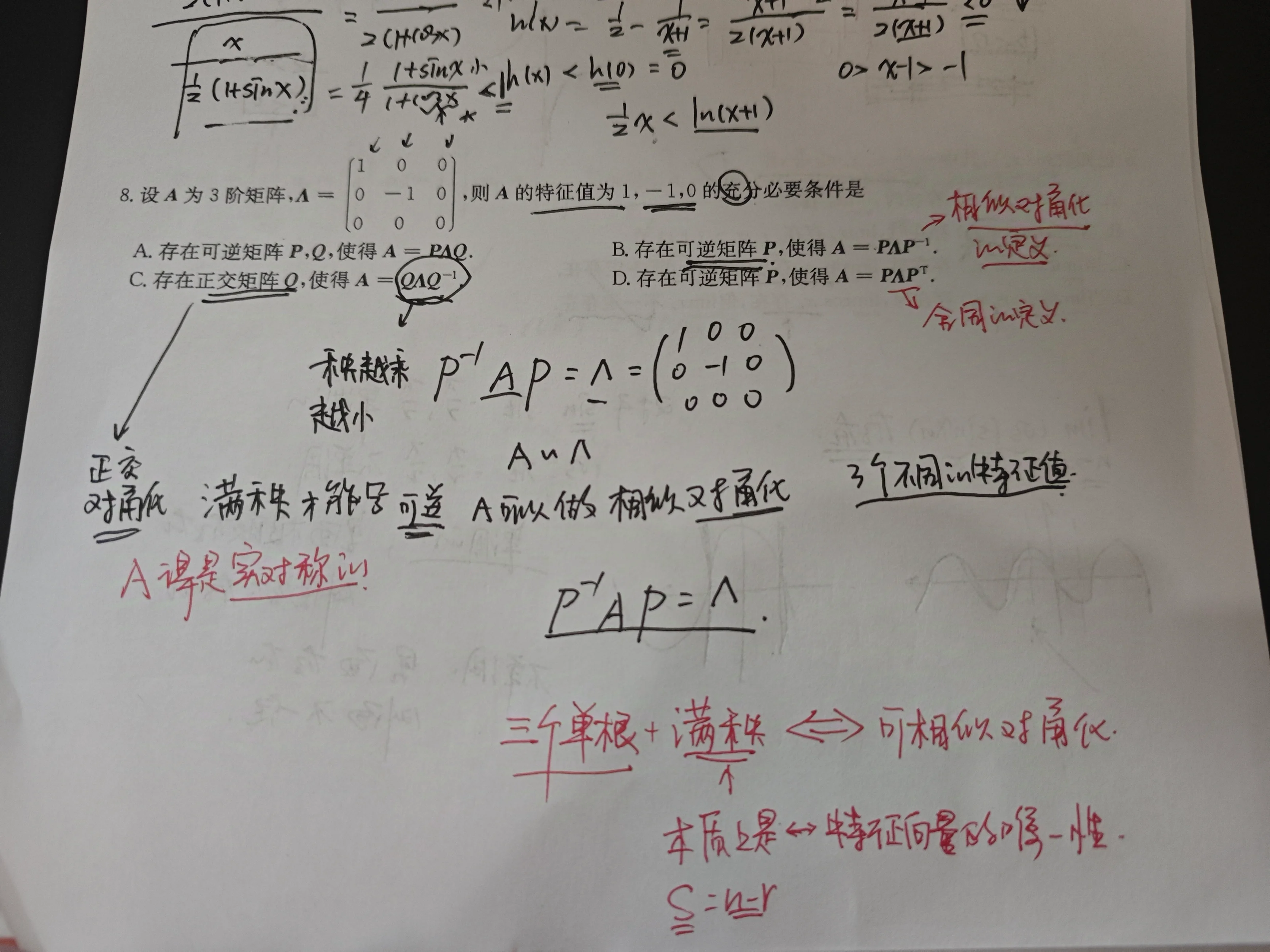 相似对角化的充要条件,注意矩阵A和对角矩阵,做矩阵相似的充分条件和充要条件: