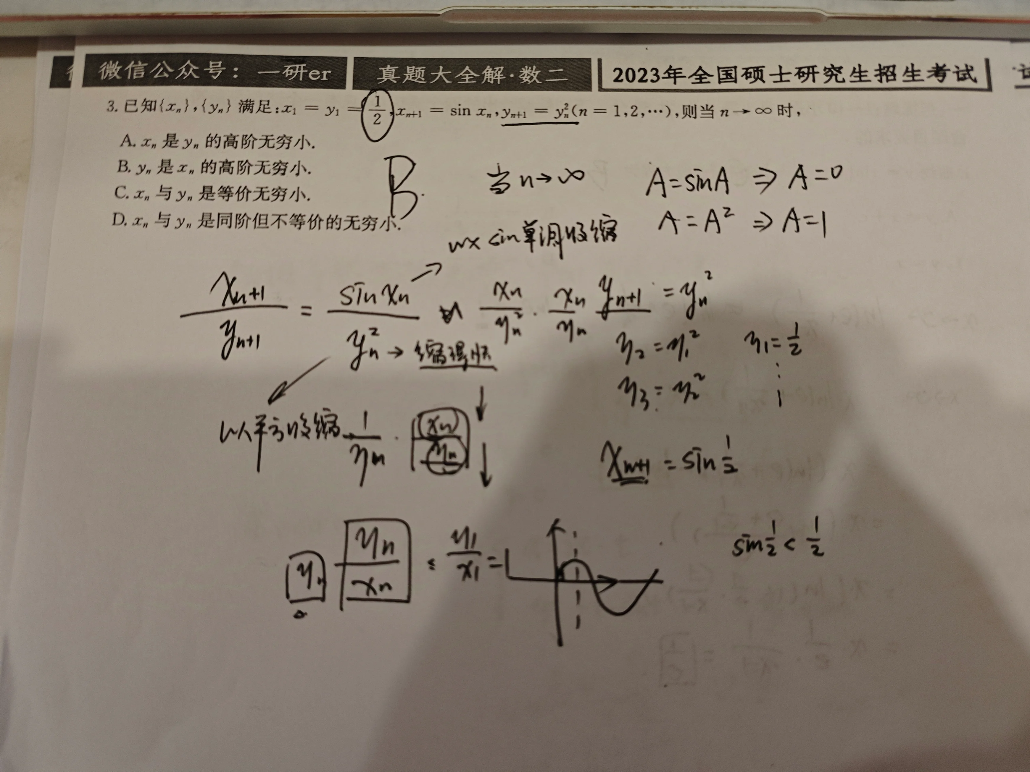 不要怀疑自己,直接宏观上考虑趋势就可以了,本质上这个题目考察的是数列里面带着三角函数的几何放缩+压缩映射,这个题目我们再张宇的强化里面做过,只不过是以大题的形式出现的:例2.20