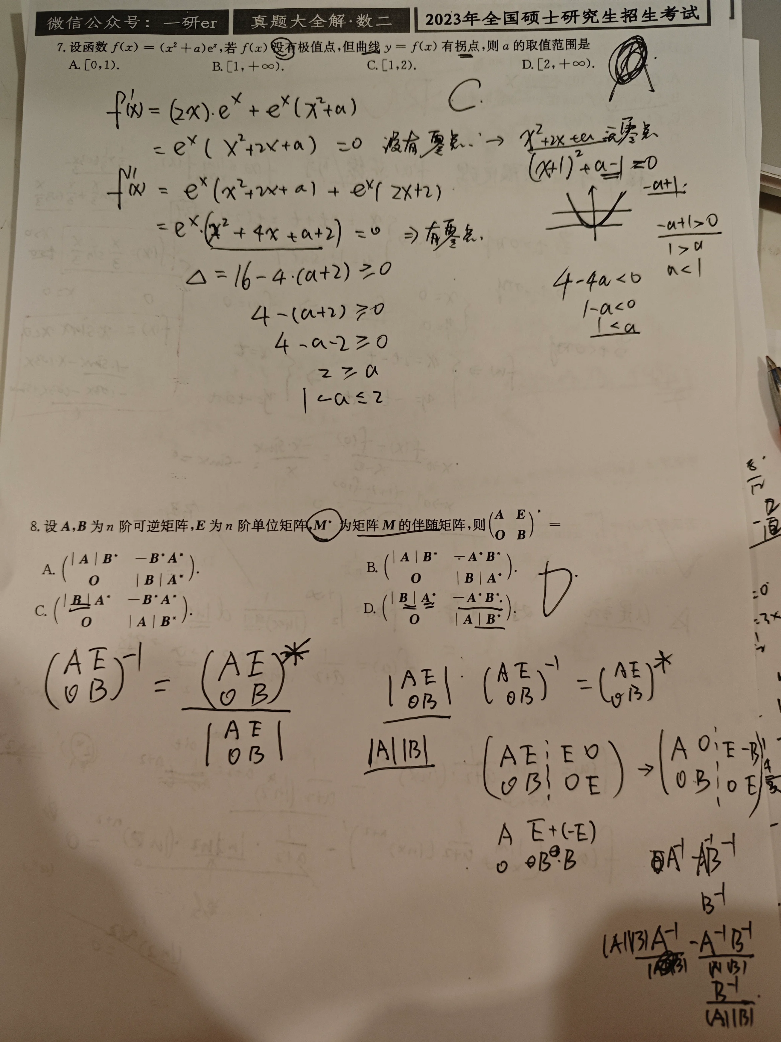 考察分块矩阵的广义初等变换,这种题目我们已经做了很多遍了:题2.9,题7,例3.17,注意关键是,分块矩阵做行加减只能左乘,做列加减,只能右乘