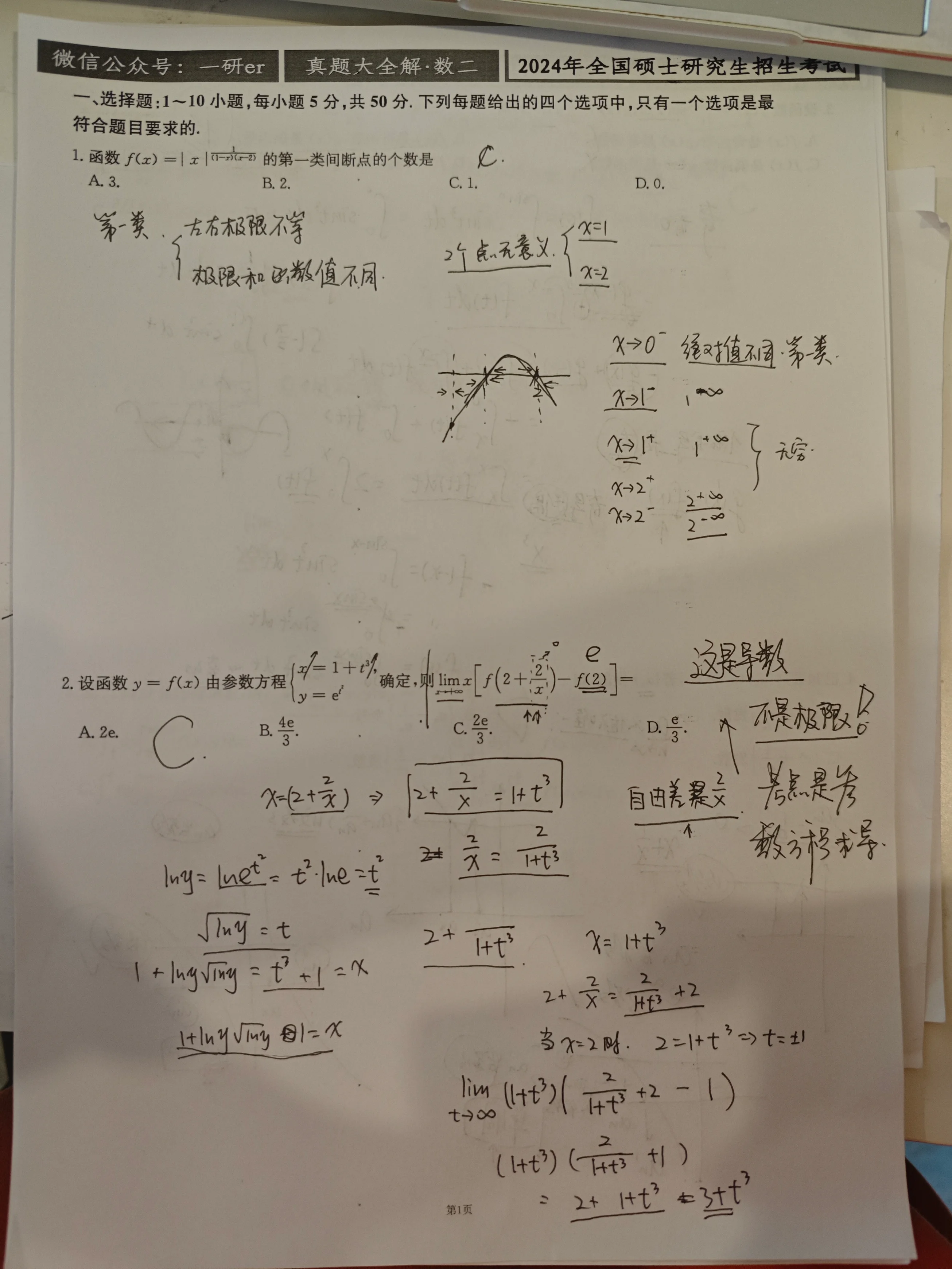 又是这种带绝对值和分母没有定义的间断点判断,这种还是不少的,我当时脑子就是一团浆糊,一般来说在没有定义的地方都是无穷间断点,绝对值这里一般来说因为从左靠近和右靠近正负不同,一般是第一类间断点中的跳跃间断点