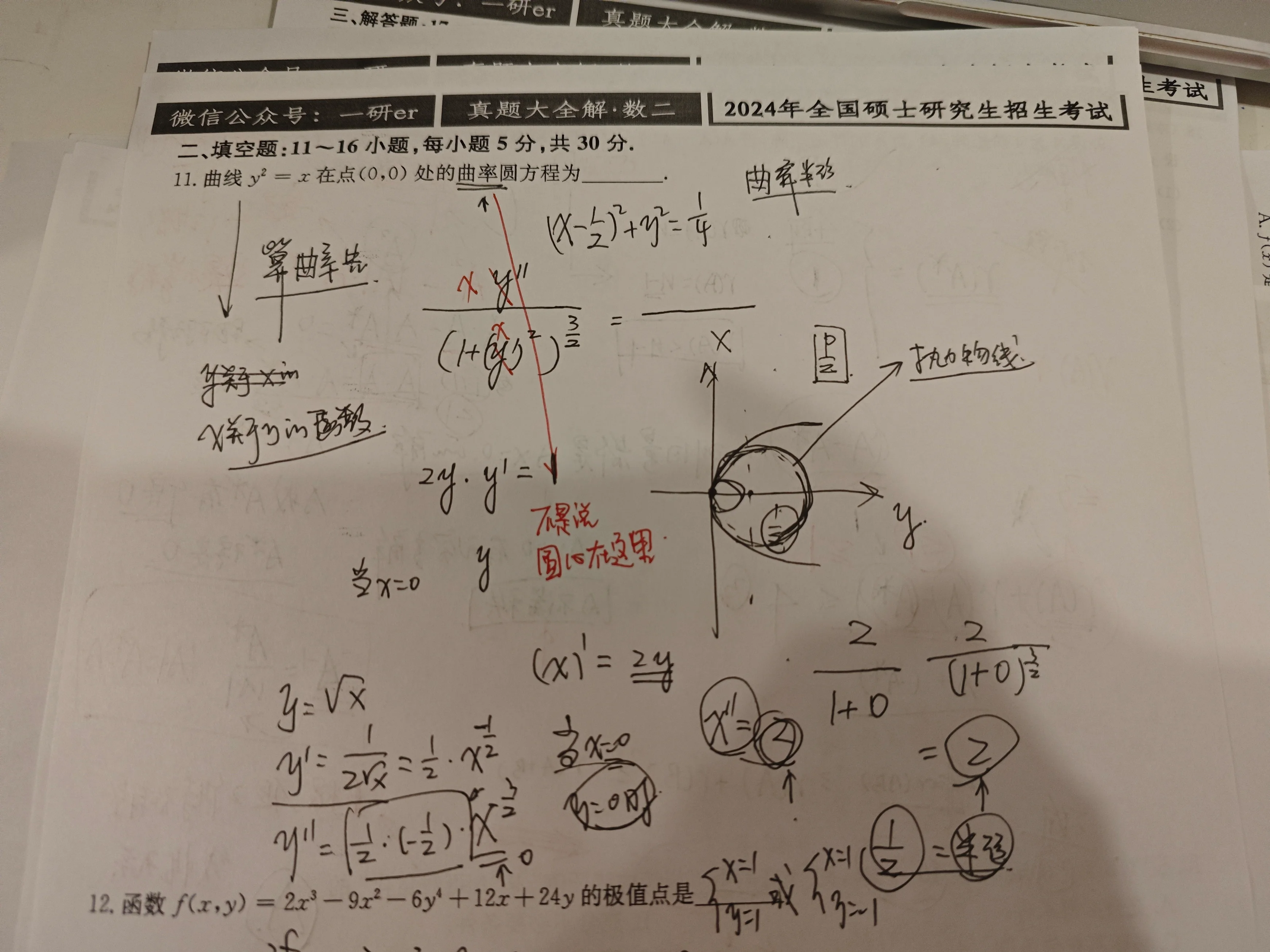 曲率圆不是说圆心在这个点上!只是用一段圆的圆弧来拟合这个点附近的趋势,这是抛物线,可以只用中学知识处理,注意这里如果看作y关于x的函数,就是曲线方程了,我们的目的是拟合,换个角度,旋转90度看,再套这个公式