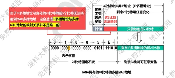 IP多播地址与多播MAC地址的映射关系如下图所示