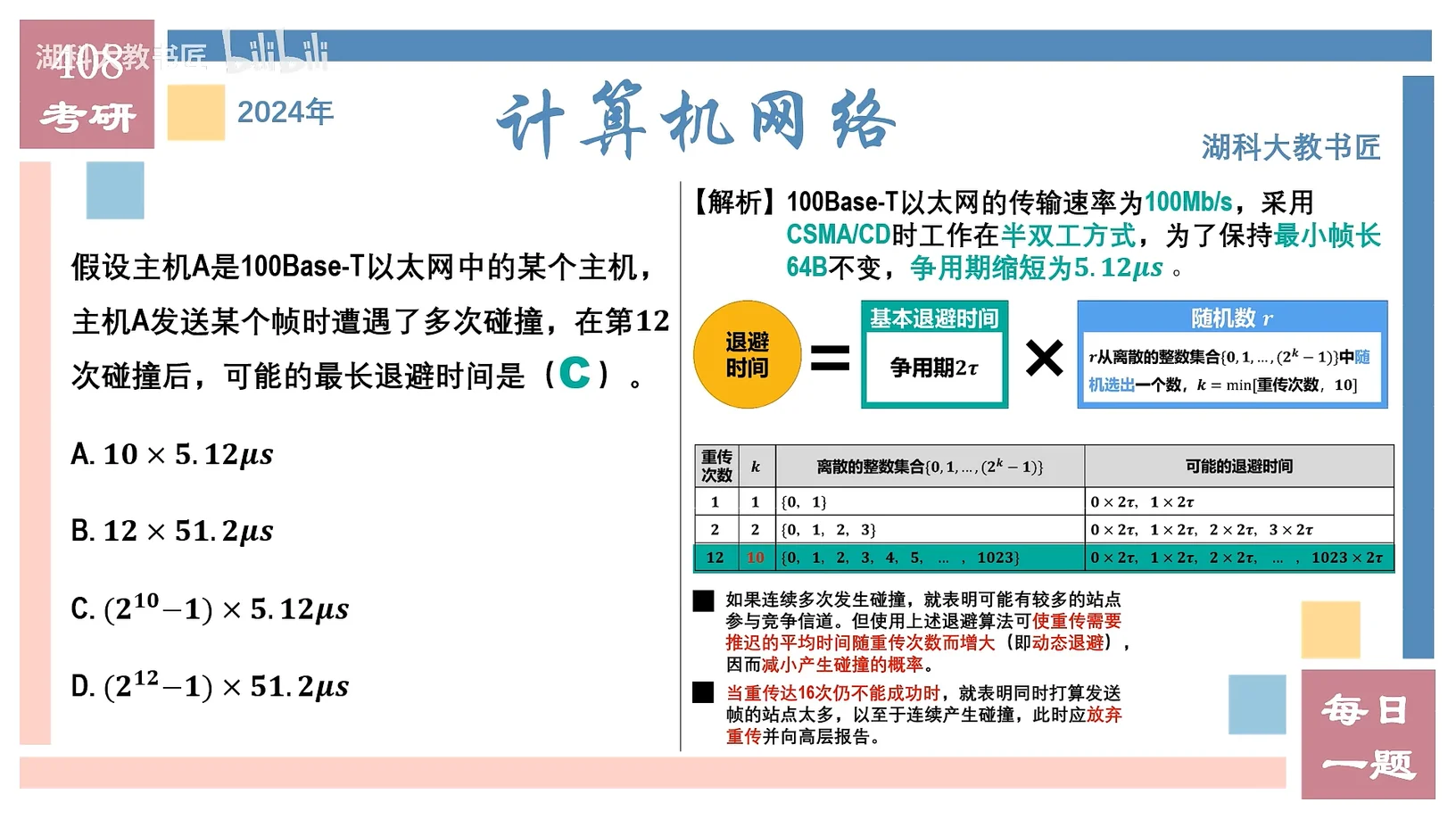 超过10也只按照10计算退避算法里的退避时间,我选C