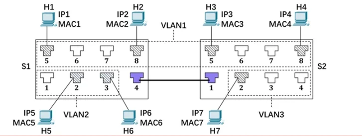 I. S1的接口4和S2的接口1的类型都需要设置为Trunk.