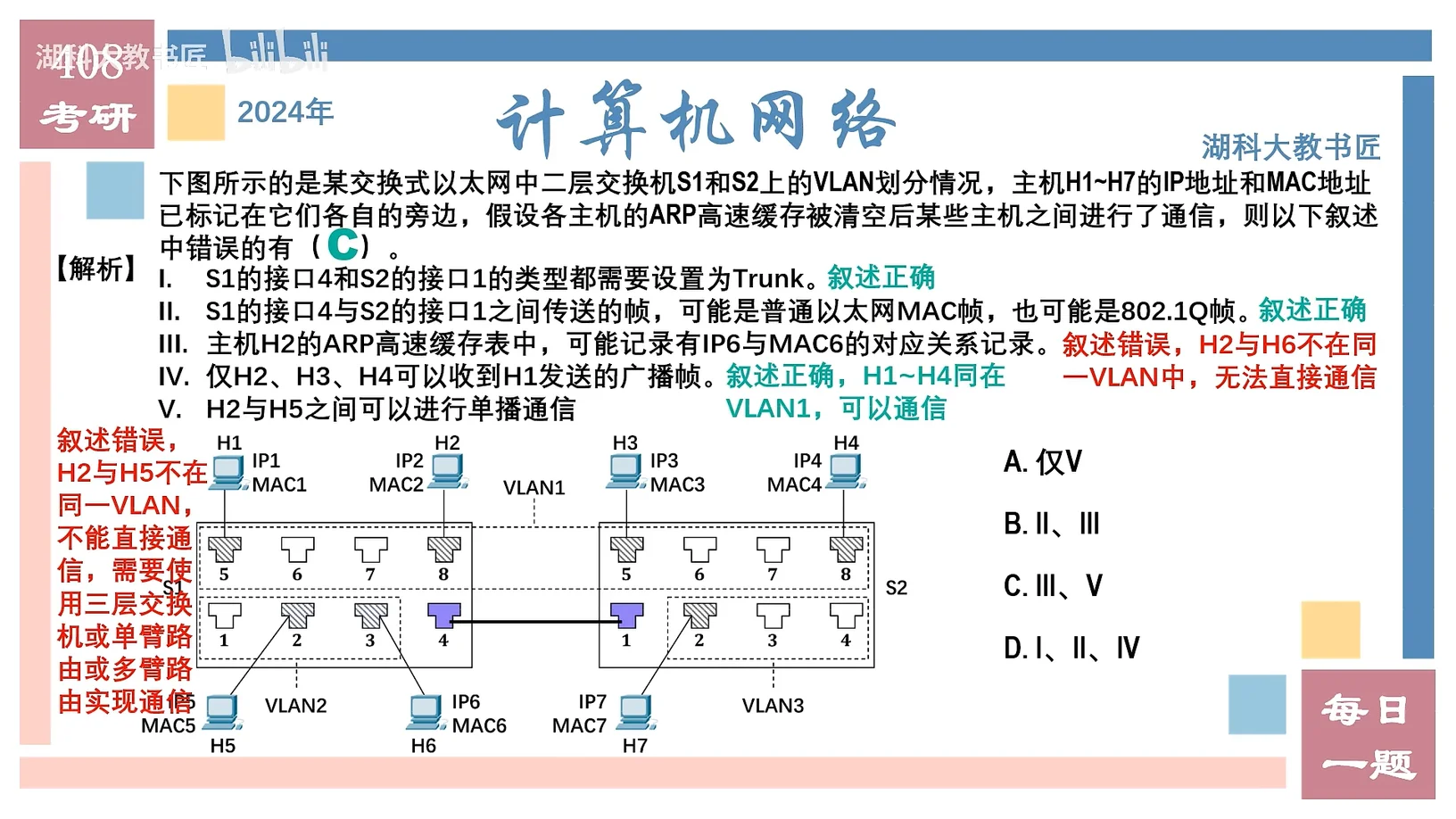 II. S1的接口4与S2的接口1之间传送的帧,可能是普通以太网MAC帧,也可能是802.1Q帧。