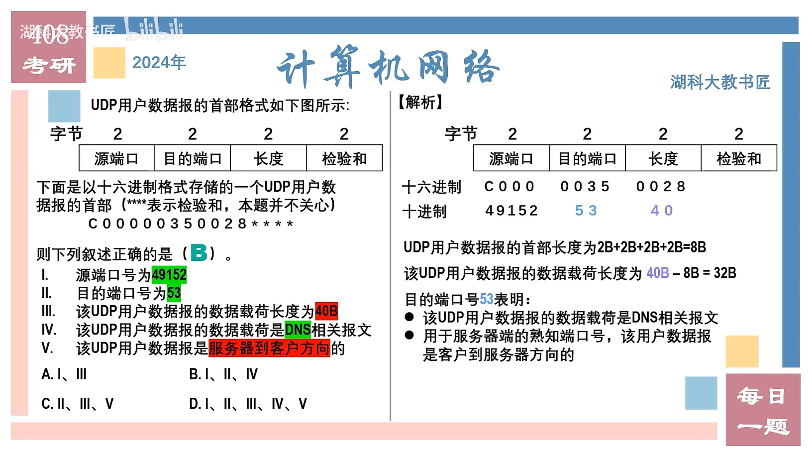 UDP的长度字段,是包括首部和数据的,所以是40B-8B=32B,剩下的是数据