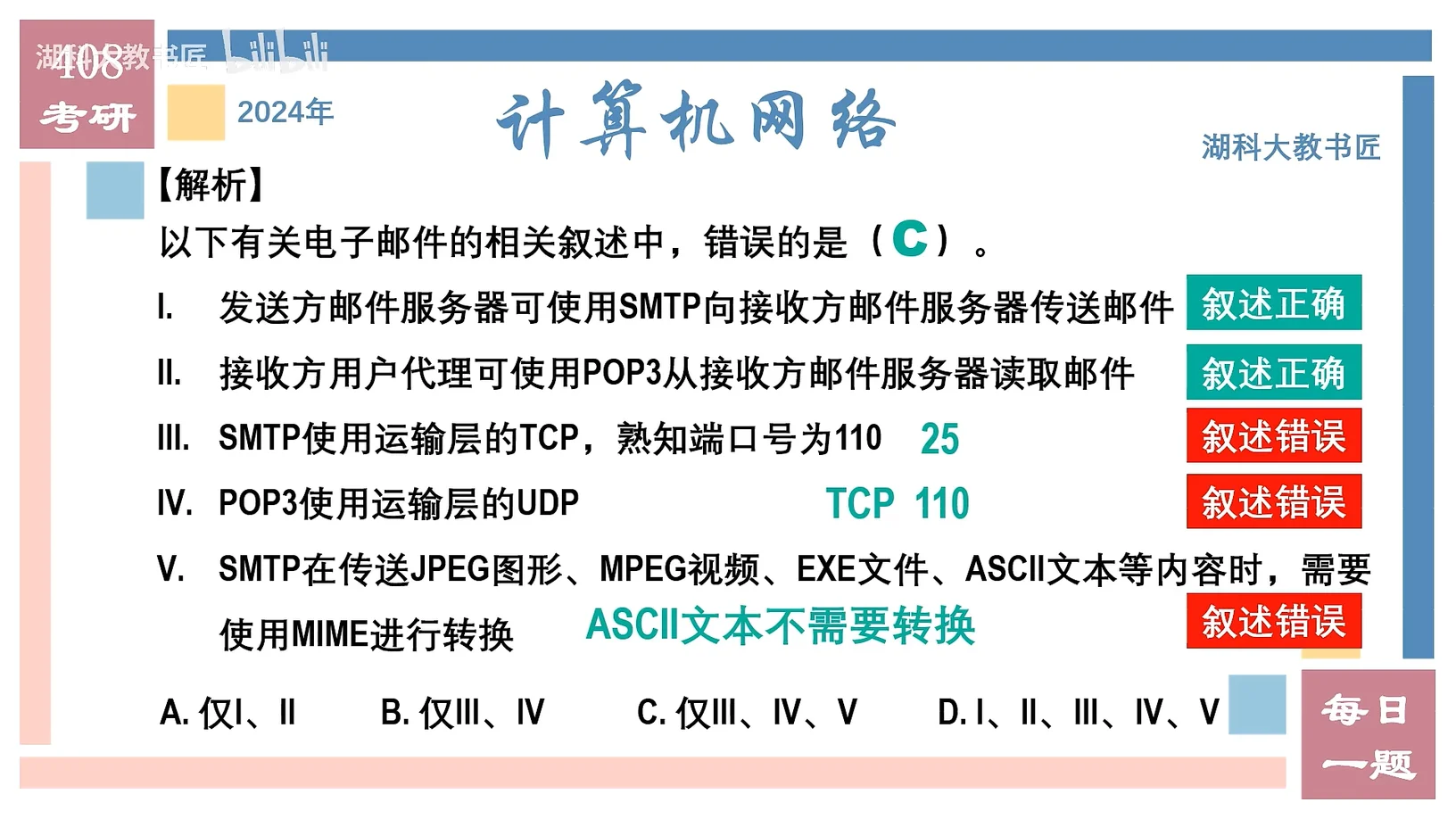 III.SMTP使用运输层的TCP,熟知端口号为110