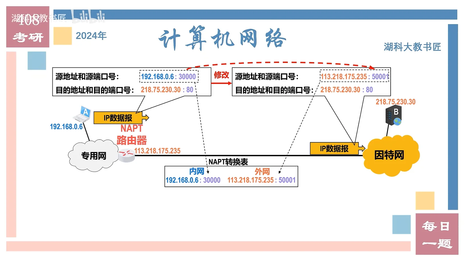 显然是选A,NAT始终是以这个和外界互联网互联的路由器的ip地址作为通信的目标和起点