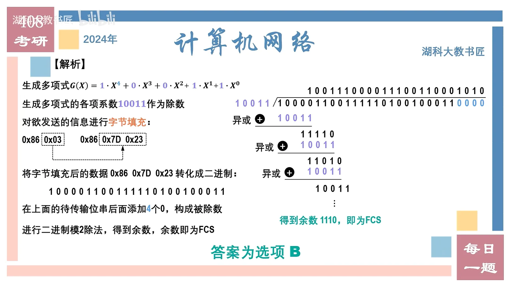 A:又是循环冗余校验,这个题目和:题3类似,只不过这里的等待发送数据修改为了16进制,要使用PPP协议对这个信息做字节填充,具体的填充方法我们在题3中有做