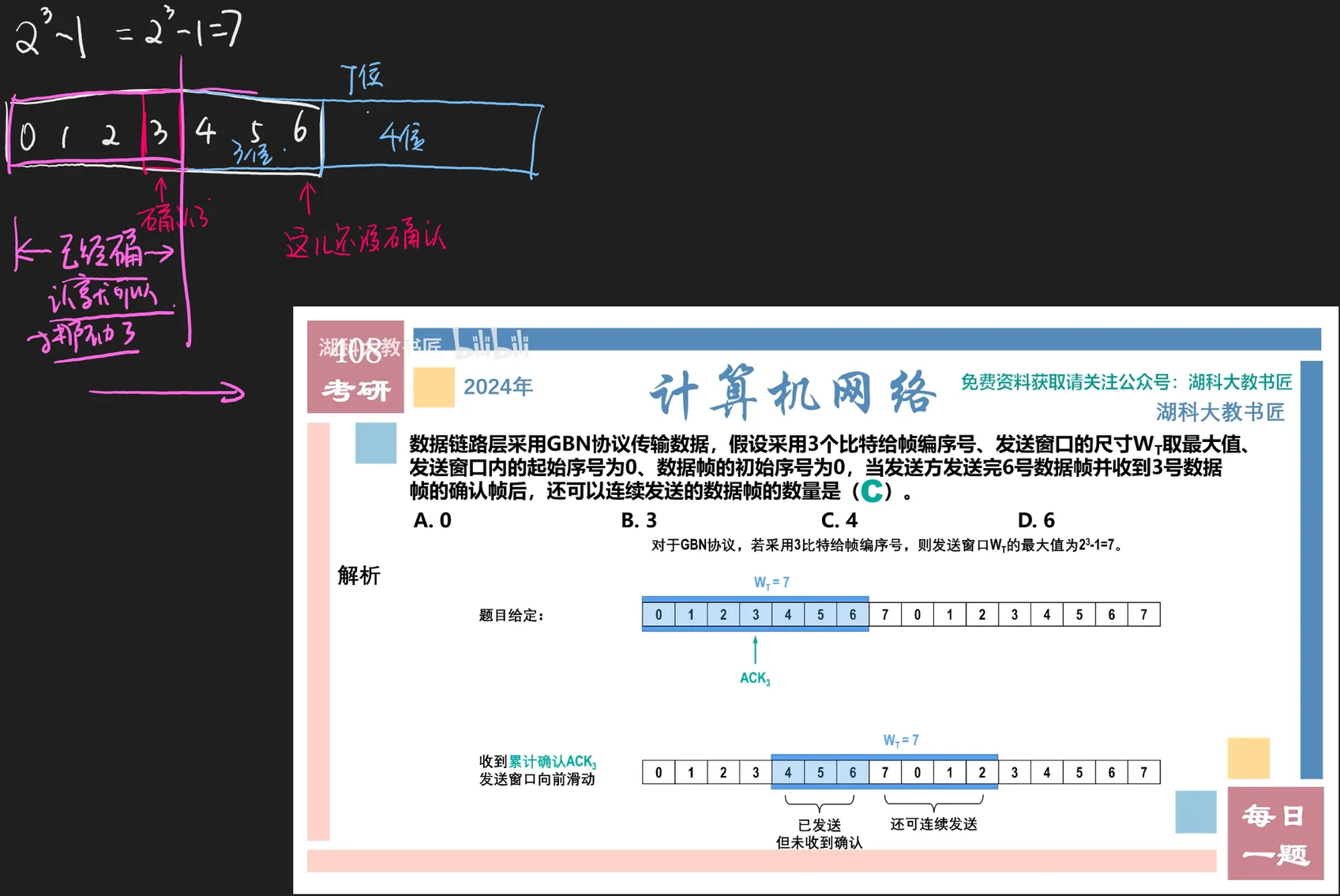 数据链路层采用GBN协议传输数据,假设采用3个比特给帧编序号、发送窗口的尺寸W取最大值、发送窗口内的起始序号为0、数据帧的初始序号为0,当发送方发送完6号数据帧并收到3号数据帧的确认帧后,还可以连续发送的数据帧的数量是()。