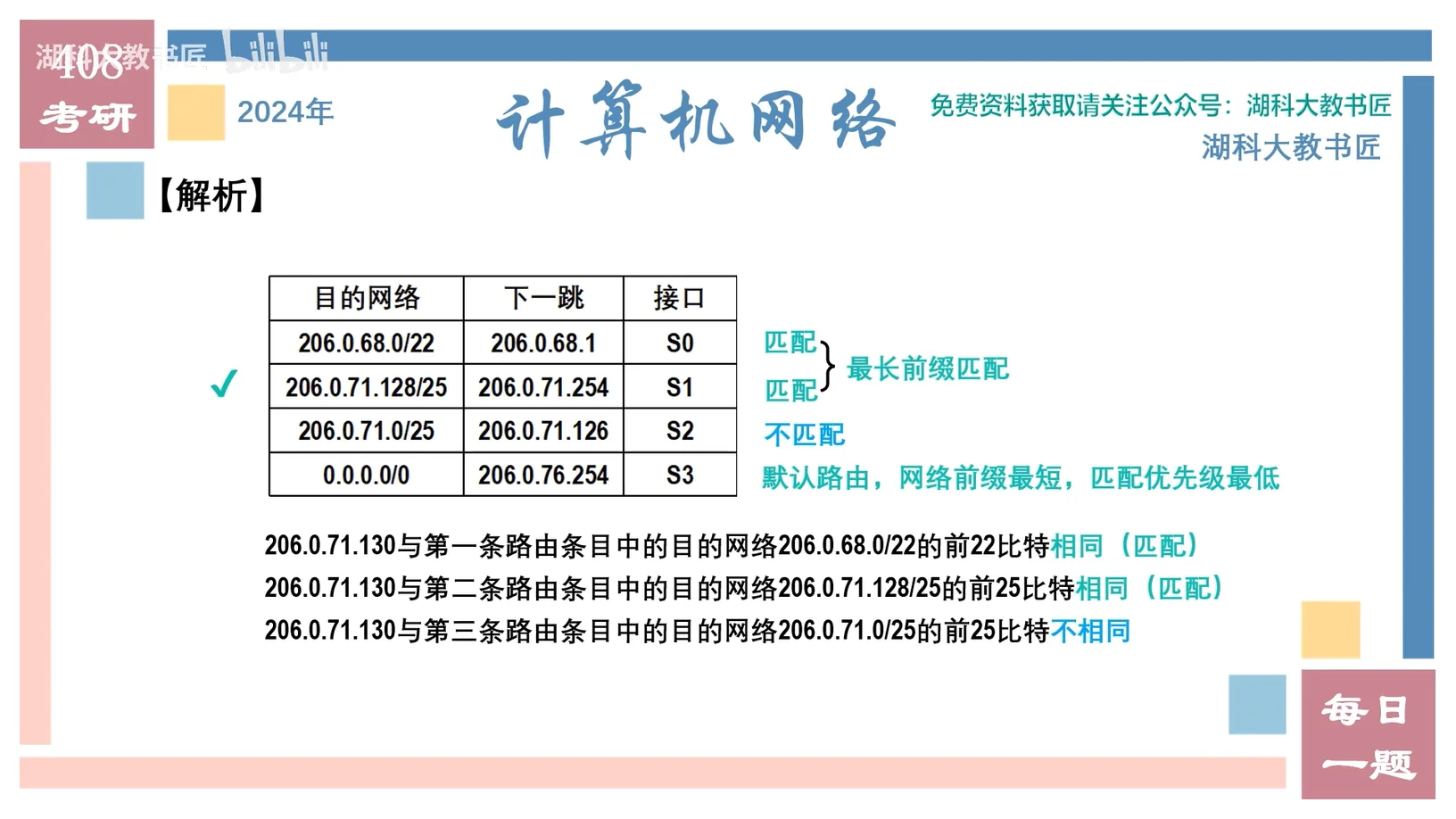 路由器的路由表对IP数据报的分发遵循最长前缀匹配,找前缀啊最长那个走