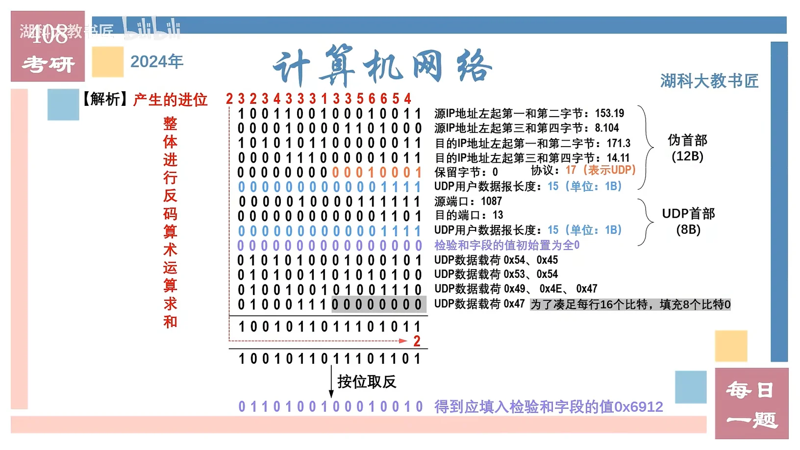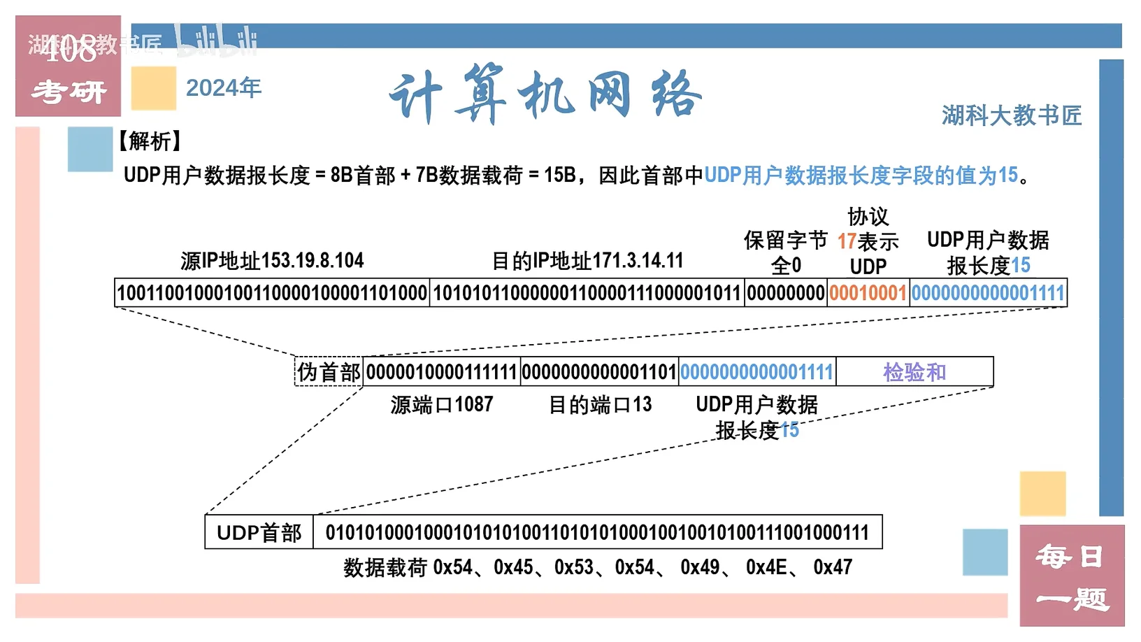 请给出上述UDP用户数据报的首部中以下字段的值:UDP用户数据报长度(十进制)、检验和(十六进制)