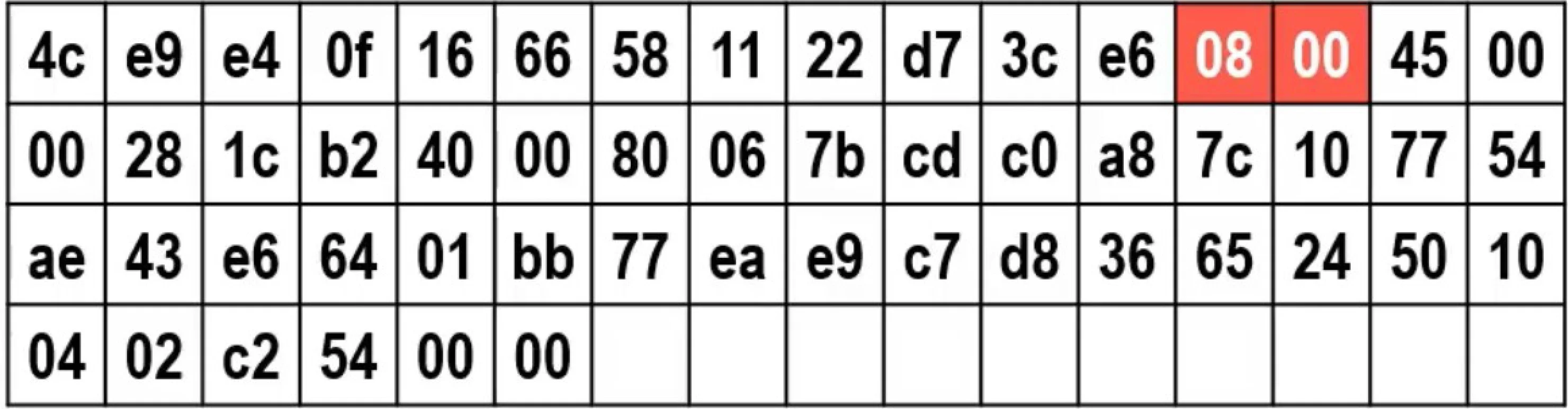 下图是主机A发送的一个以太网V2的MAC帧(不包括帧尾部中的4B帧检验序列FCS),构成帧的全部字节以十六进制形式显示(自上而下,从左至右)。通过该帧的类型字段的值